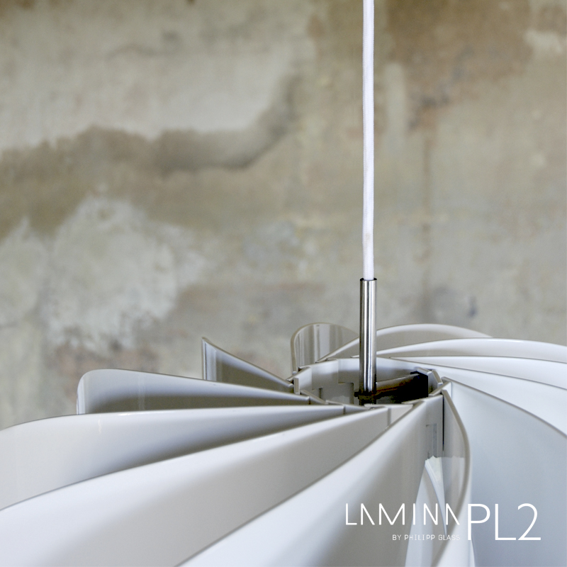 LAMINA steht für eine Produktreihe hochwertiger Leuchtobjekte mit einem ausgewogenen Verhältnis zwischen technischem Charakter und floraler Formensprache. Die Grundlage für die LAMINA-Leuchten bilden einzelne, seriell gefertigte, lasergeschnittene Elemente, welche zu einer auf das Wesentliche reduzierten, selbstragenden und eleganten Konstruktion zusammengesteckt werden. Im Wesentlichen handelt es sich dabei um zwölf einzelne, den Schirm bildende, Lamellen, die durch ihre Anordnung einen direkten Einblick auf das Leuchtmittel verhindern. Das Licht wird gelenkt und von den seitlichen Lamellen reflektiert.